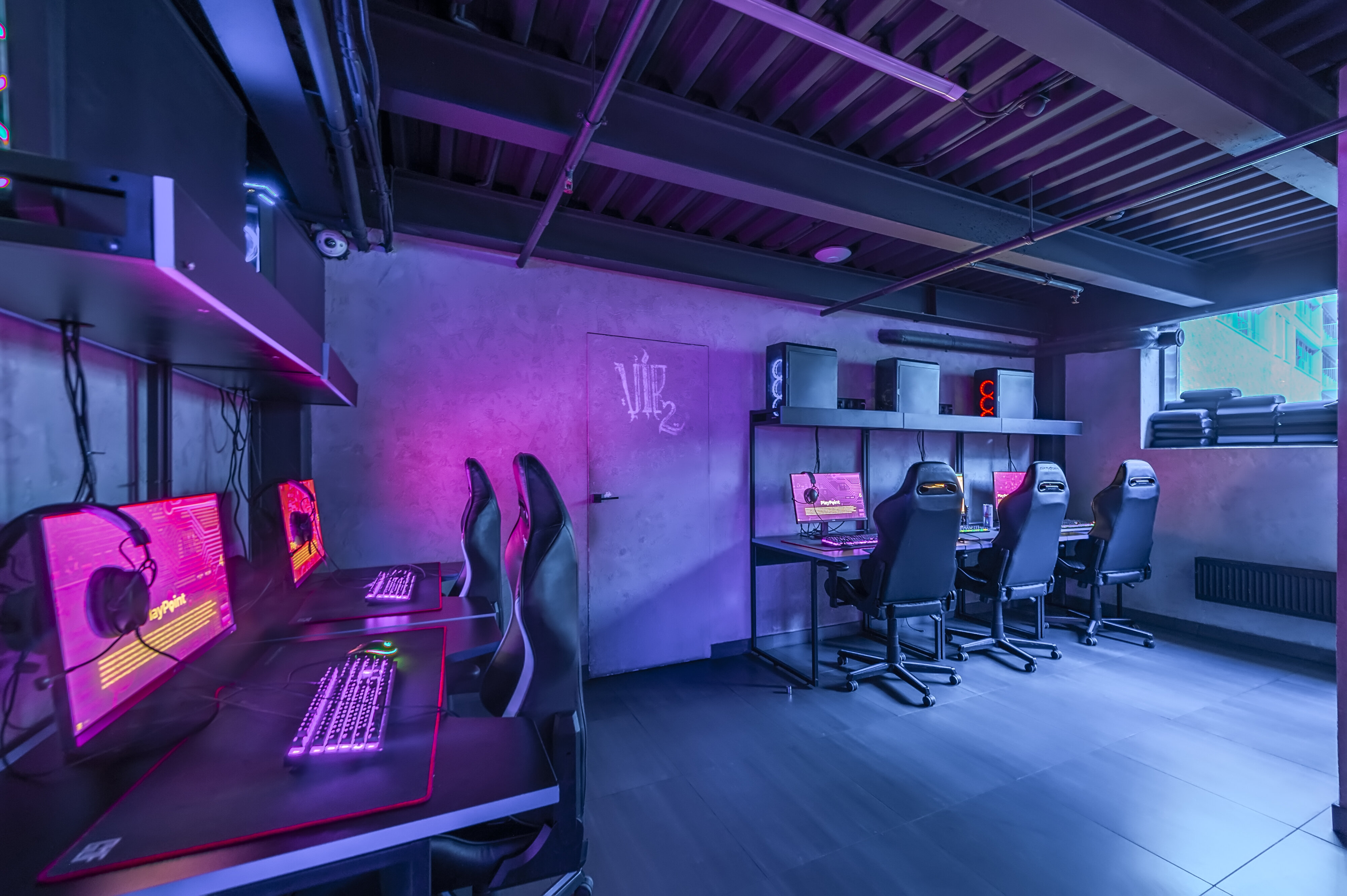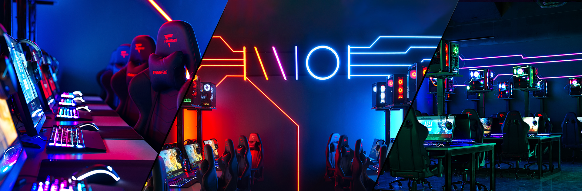 أجهزة حديثة، شاشات عالية التردد، سماعات احترافية، وكراسي مريحة مصممة لساعات طويلة من اللعب المتواصل.